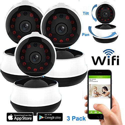 Coolcam HD 720P Wireless WiFi IP Camera Smartphone CCTV Security Surveillance 2way Audio with Night Vision and Motion Detect Recording 3PK