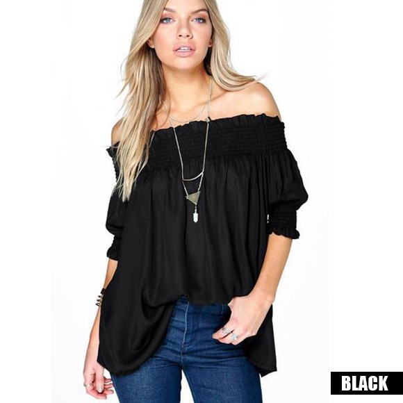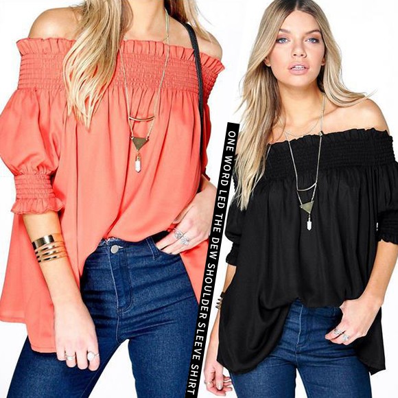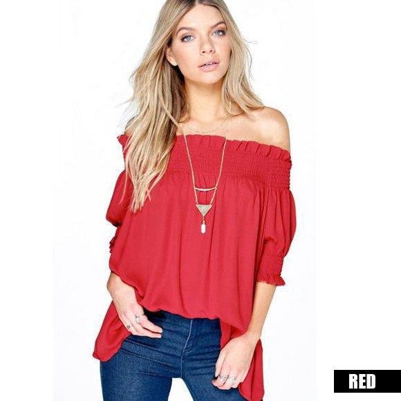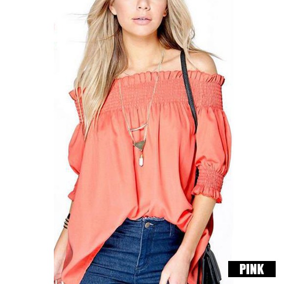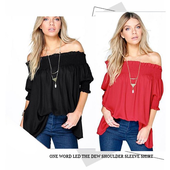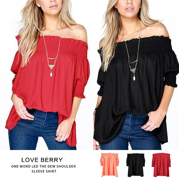 クシュッと絞った袖と肩がポイントの、ギャザーオフショルトップス☆