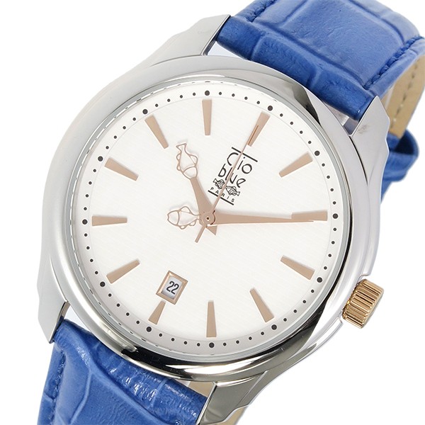 クオーツ、日常生活防水、日付カレンダー、カラー:ホワイト(文字盤)、ブルー(ベルト)