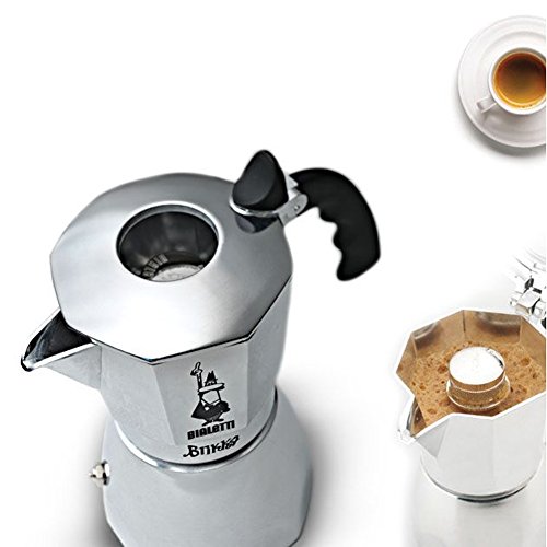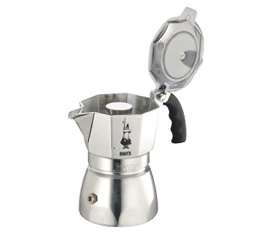 The Bialetti Brikka allows you to enjoy special coffee every day without leaving the comfort of your kitchen. The Brikka system revolutionized the stovetop espresso maker by preparing the espresso with 'crema”. With the special pressure-controlled system that regulates the pressure of water flowing through the coffee grounds you can now enjoy the rich and intense flavor of a creamy coffee. Featuring an opening lid that allows the condensation to escape, flip-up top and side-pour spout provide added convenience. This stovetop brewer makes four 2-ounce cups of espresso in 4-5 minutes. Made of durable polished aluminum this pot features Bialetti's distinctive eight-sided shape that allows it to diffuse heat perfectly to enhance the aroma of your coffee. To use; fill the lower chamber with cold water just below the valve. Insert the funnel and fill it with ground espresso (do not tamp). Remove any coffee grounds on the edge of the funnel. Tightly screw the upper part of the pot on the base. Avoid using the handle for leverage. Select burner size to fit the bottom of pot. For gas stovetop, make sure the flame is not larger than bottom of pot. The flame should not come around the sides of the pot. Place pot on the stovetop until the water boils and coffee begins to come out of the center post. There will be a gurgling sound during this process. After 2 to 3 minutes, a small amount of coffee will trickle out and then you will hear a puffing noise. The froth will form in 3-4 seconds. When the top of the pot is full of coffee, remove from stove. Before pouring coffee, stir it in the upper chamber with a small spoon to equalize all the different coffee layers for optimum flavor. Note that the max boiler capacity is slightly more than the final output since there is always a little water left in the boiler after brewing. Bialetti is the world's most recognized and beloved Italian coffee company. Bialetti coffee makers have become iconic and has allowed millions of consumers to enjoy great Italian coffee that once was only available in cafes and restaurants. Bialetti's passion remains in making superb coffee simple.