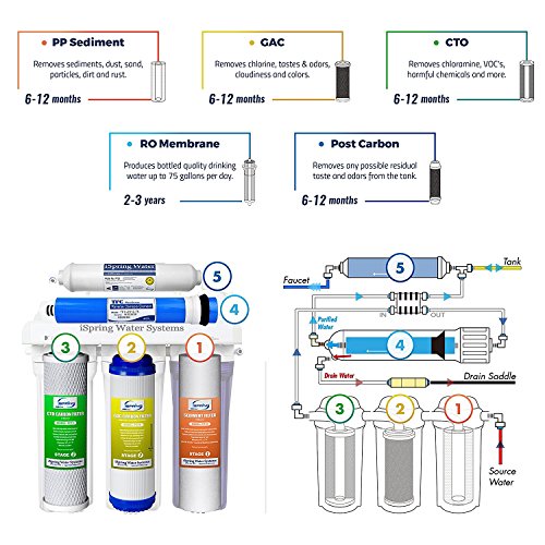 2x 5 Micron 10" CTO Carbon Block Filters (3rd Stage, #FC15): Further removes any remaining chlorine, tastes, and odors. Replace approximately every 6 months.