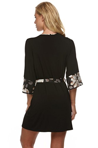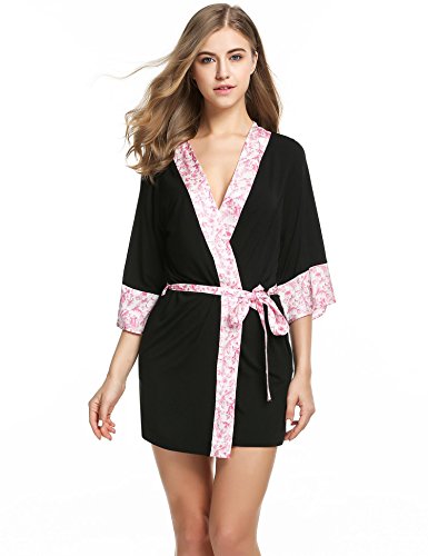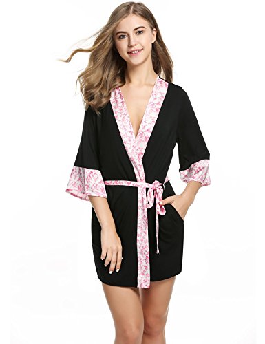 Ekouaer Womens Sleepwear Kimono Short Robe Lounging Wear Dressing Gown (Black, Small)
