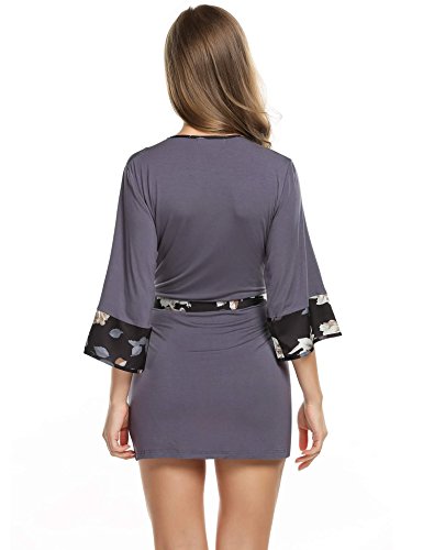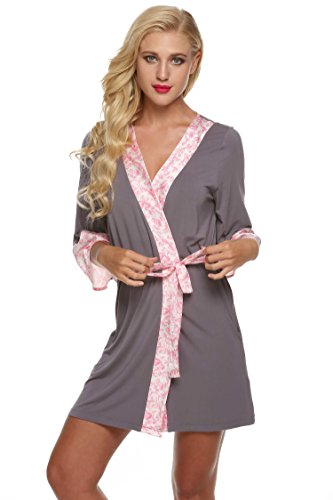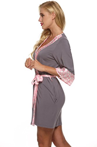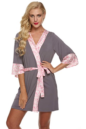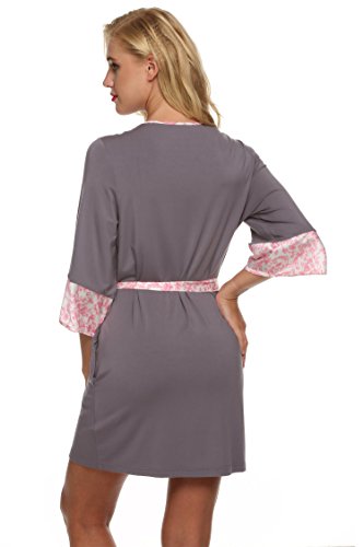 Ekouaer Womens Kimono Short Robes Comfort Nightwear Sleepwear Lingerie (Gray, Small)