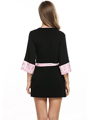 Ekouaer Sexy Robe Towelling Short Bath Robe Lightweight Lingerie (Black, Medium)
