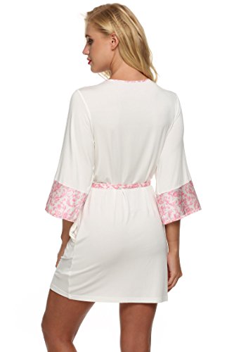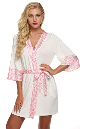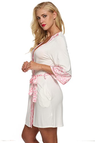 Ekouaer Womens Robe Kimono Spa Bathrobes Short Sleepwear (White, Small)