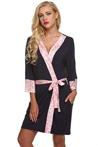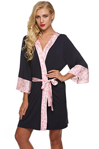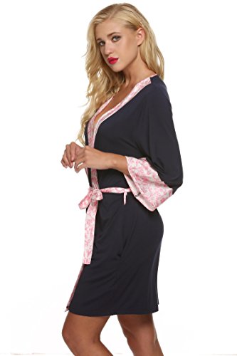 Ekouaer Kimono Bathrobe Womens Spa Robe Sexy Sleepwear Short Style (Blue, Large)