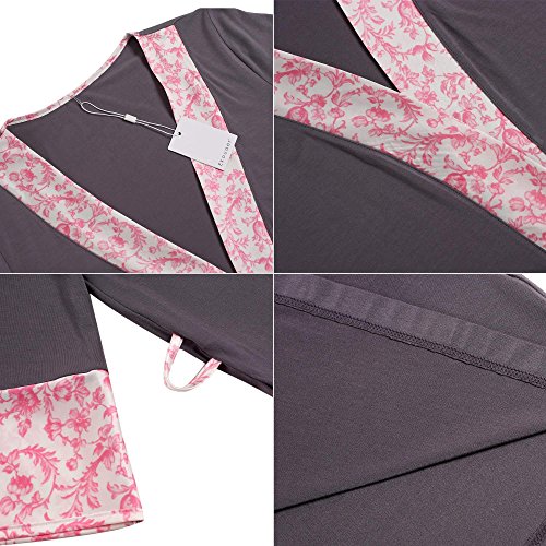 Ekouaer Lounge Robe Womens Spa Robe Mid Length Nightwear Lingerie(Gray, Large)