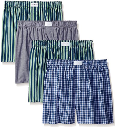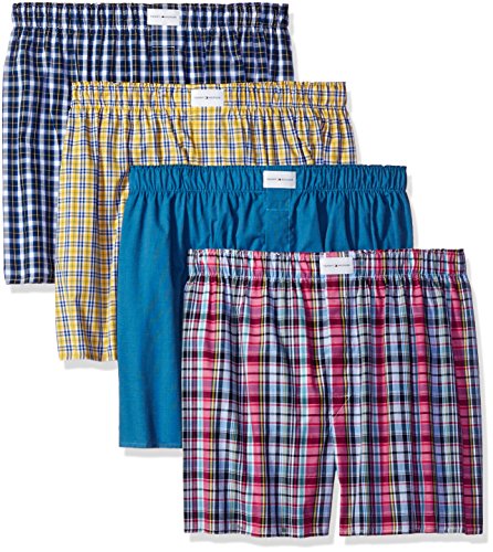 Tommy Hilfiger Men's Underwear 4 Pack Cotton Classics Woven Boxers, Colorful Multi, Medium
