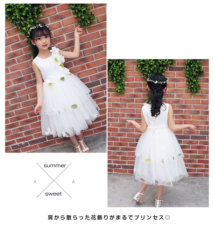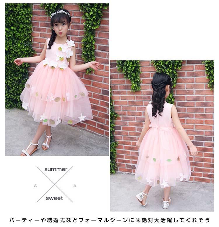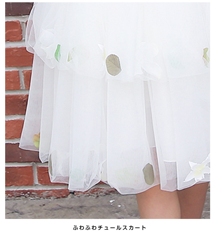 | 豪華な花モチーフパーティードレス手に取った瞬間からプリンセスに変身!数枚のチュールが重ねてボリュームたっぷりシルエットがcute!肩から散らった花飾りがまるでプリンセス◎パーティーや結婚式などフォーマルシーンには絶対大活躍してくれそう | |