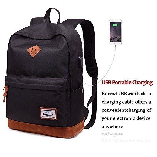 Lmeison Waterproof School Bag Durable Travel Camping Outdoor Backpack Lightweight Casual Daypack Fashion Student Rucksack with USB Charging Port for Boys Girls Men Women, Fits under 15" Laptop