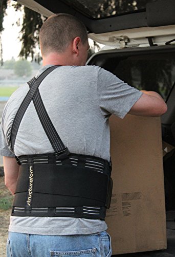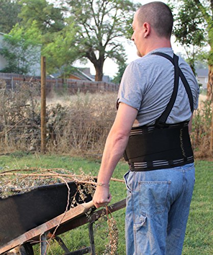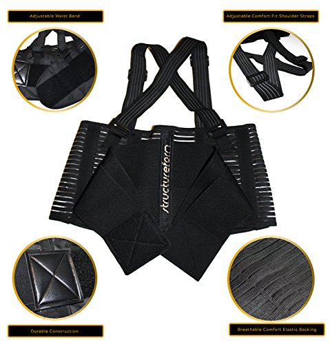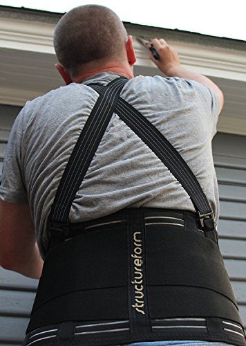 Back Brace by StructureForm | Lumbar Support Belt with Removable Suspenders | Fits Waist to 43 Inches