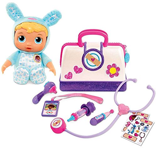 Whos ready for a Doc McStuffin's Toy Hospital Checkup? Disney Junior's Doc McStuffins Toy Hospital Doctors Bag Set with Lil Nursery Pal has everything your little one needs to care for toy patients just like Doc. This doctors bag looks just like the bag Doc uses in the hit Disney Junior show, Doc McStuffins. The bag comes with a collection of caring and decorative tools such as an otoscope, a light and sounds stethoscope, thermometer, syringe, hospital ID badge and bandage sticker sheets. It even comes with a bonus Baby Check Up Lil Nursery Pal Doll inspired by the Doc McStuffins Toy Hospital Nursery. This sweet baby comes dressed in cute plush bunny costume and comes with a precious pacifier. Perfect for caring and snuggling.Feature