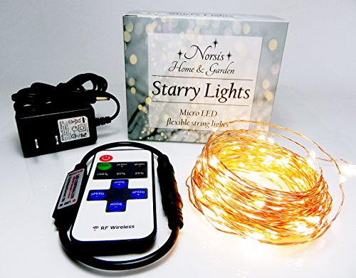 Norsis Fairy Lights - Flexible Copper Wire Starry String Lights - 100 Miniature LED Lights, Extra Long Wire - Warm White Light with Remote - Indoor/Outdoor - Interior Decor, Garden, Christmas, DIY