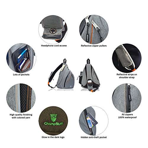 -. Title : ChampStuff Sling Bag Travel Crossbody Backpack for Men & Women, Small and Versatile, Waterproof Fabric and Zippers, Lightweight, Multipurpose Daypack