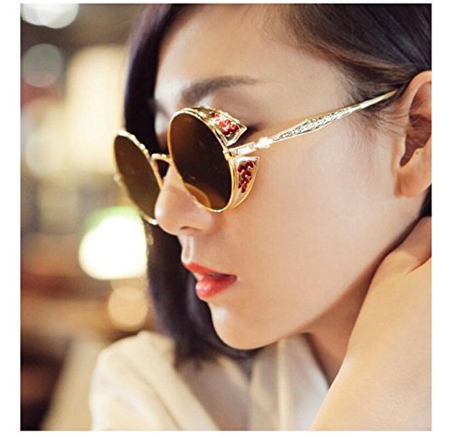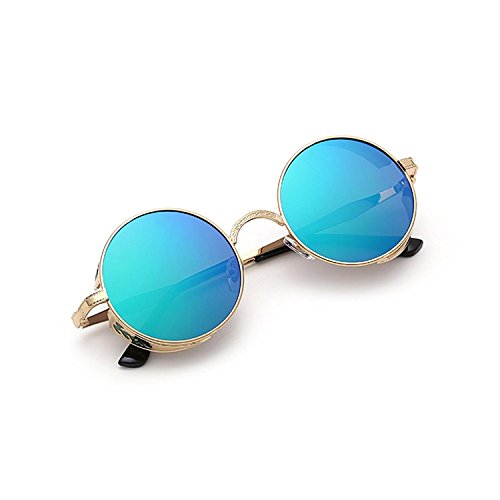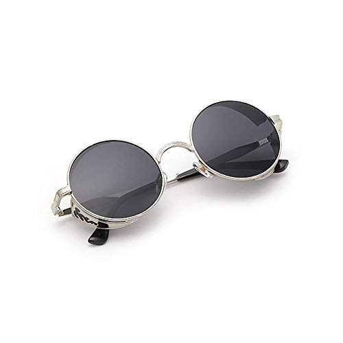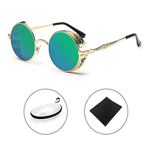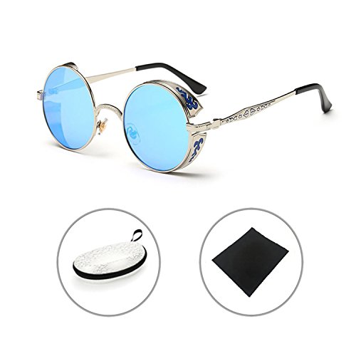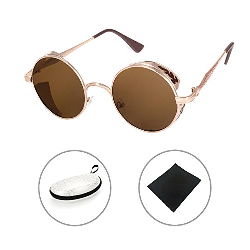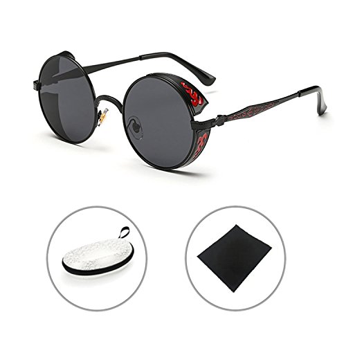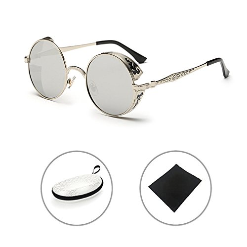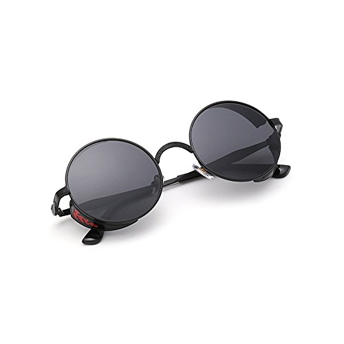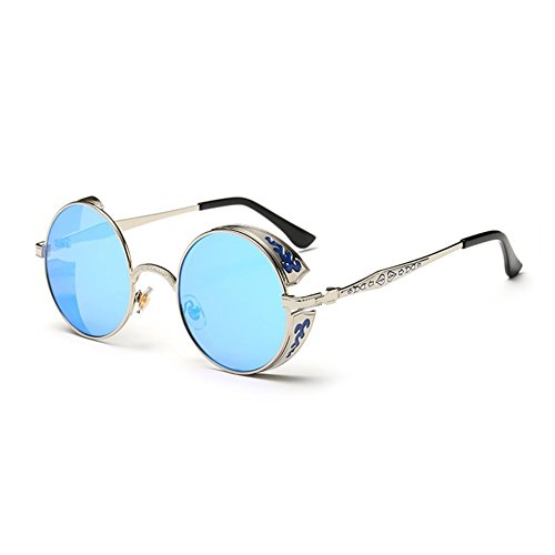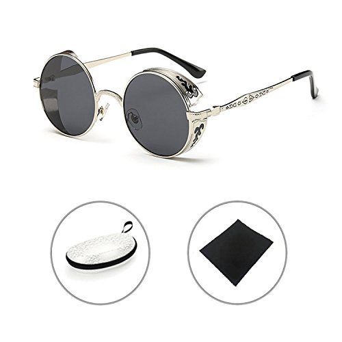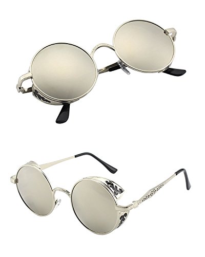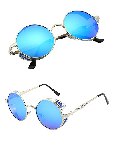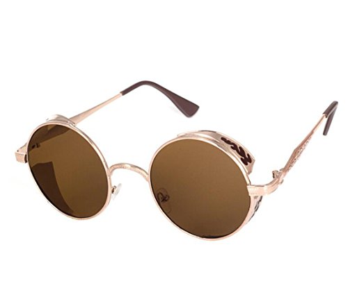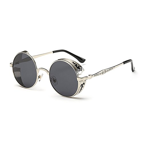 BAINA Retro Round Steampunk Sunglasses Metal Frame Women Men Gothic Vintage Sun glasses