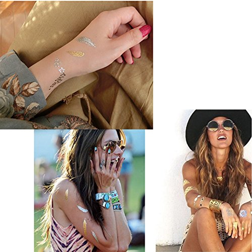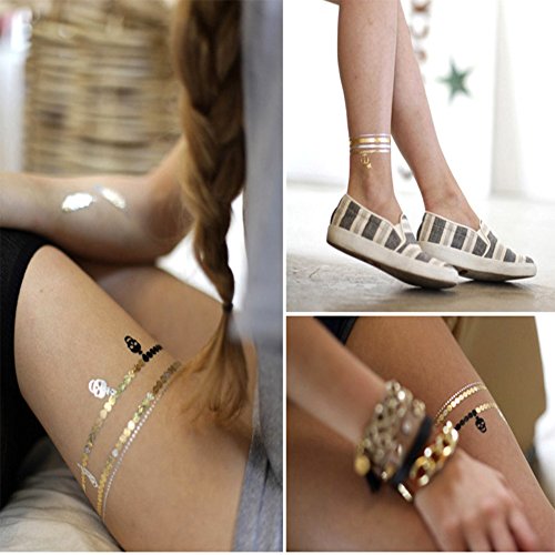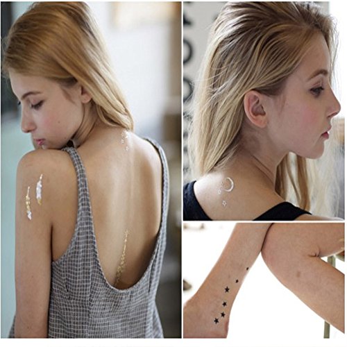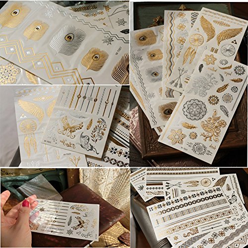 - 6 Sheets Temporary Large Size Tattoos, more than 100 choices, you can mix and match designs as you like! If you go to the gym and cannot wear jewelry , they will be the quit nice substitute.