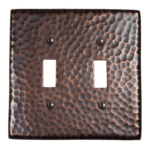 The Copper Factory CF123AN Solid Hammered Copper Double Switch Plate, Antique Copper Finish
