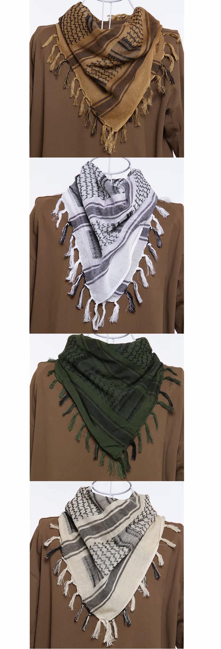Description: Very breathableThis Arab scarf will always make you look hip, keep you warm in the winter and cool on the breezy summer days. Made with 100% cottonSize:110*110CM