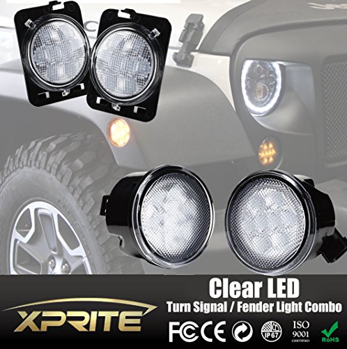 One Pair of Xprite LED Turn Signal Light Assembly w/ Clear Lens For Jeep Wrangler JK JKU 2007 - 2016