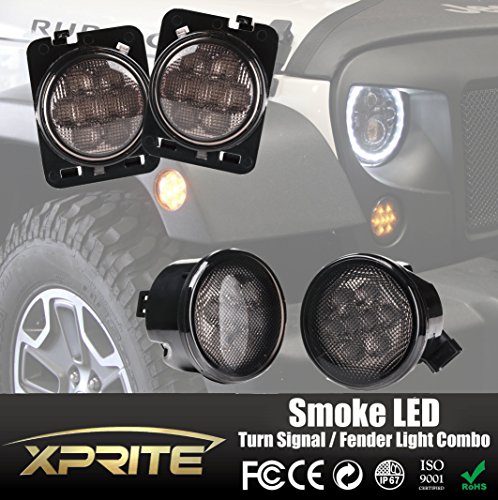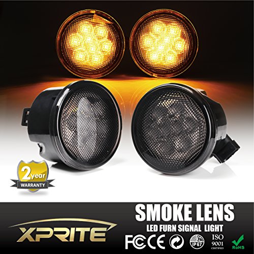 One Pair of Xprite LED Turn Signal Light Assembly w/ Smoke Lens For Jeep Wrangler JK JKU 2007 - 2016
