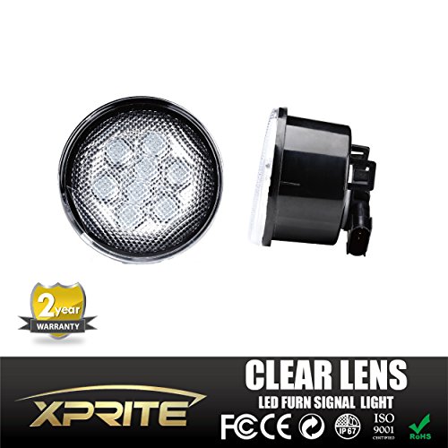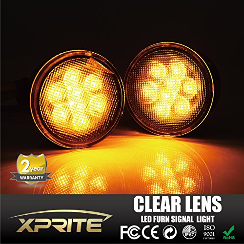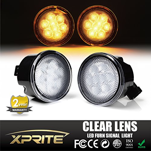 Xprite LED Yellow Front Replacement Turn Signal Light Assembly with Clear Lens for 2007 - 2016 Jeep Wrangler