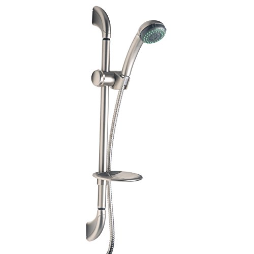 Builders Shoppe 4210BN Brass Slide Bar with Adjustable Height Massage Hand Held Shower and Soap Dish Brushed Nickel Finish