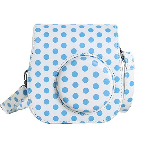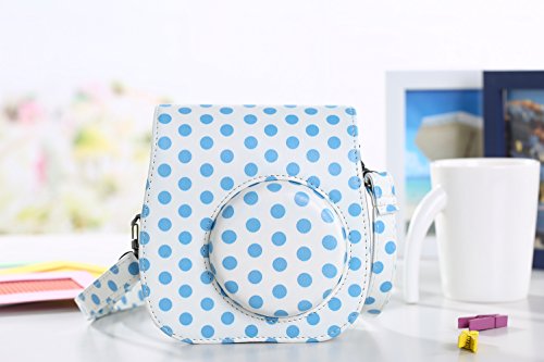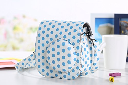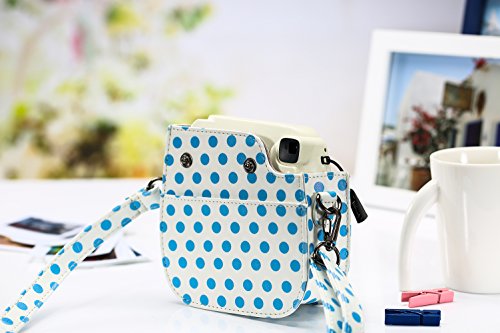 SAIKA Case Cover for Fujifilm Instax Mini 9 / 8 / 8+ with Detachable Shoulder Strap&Pocket, Blue Bubble