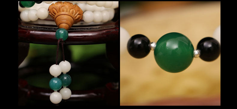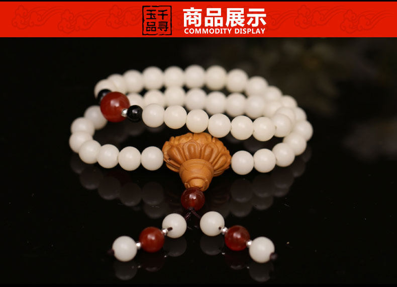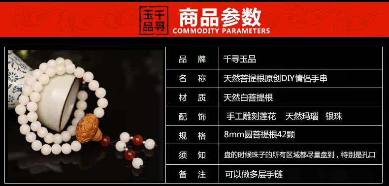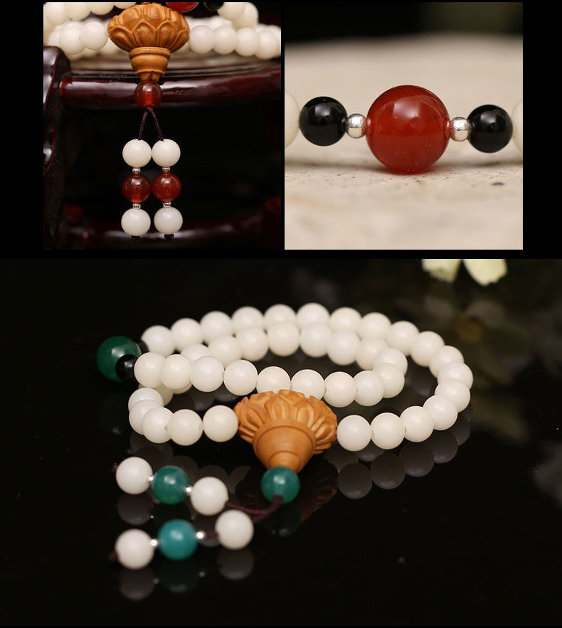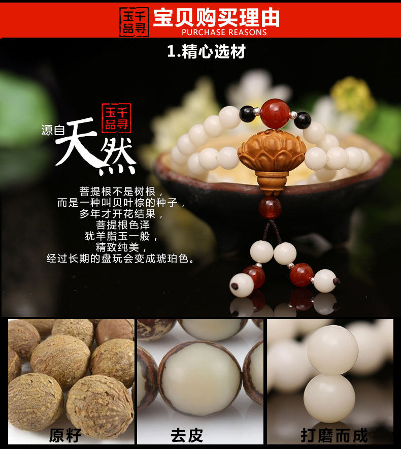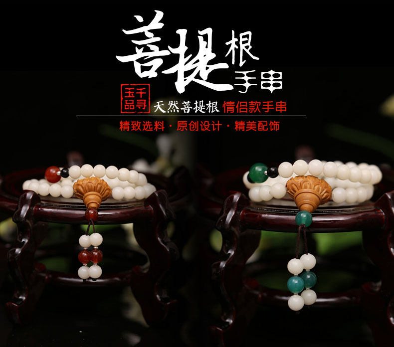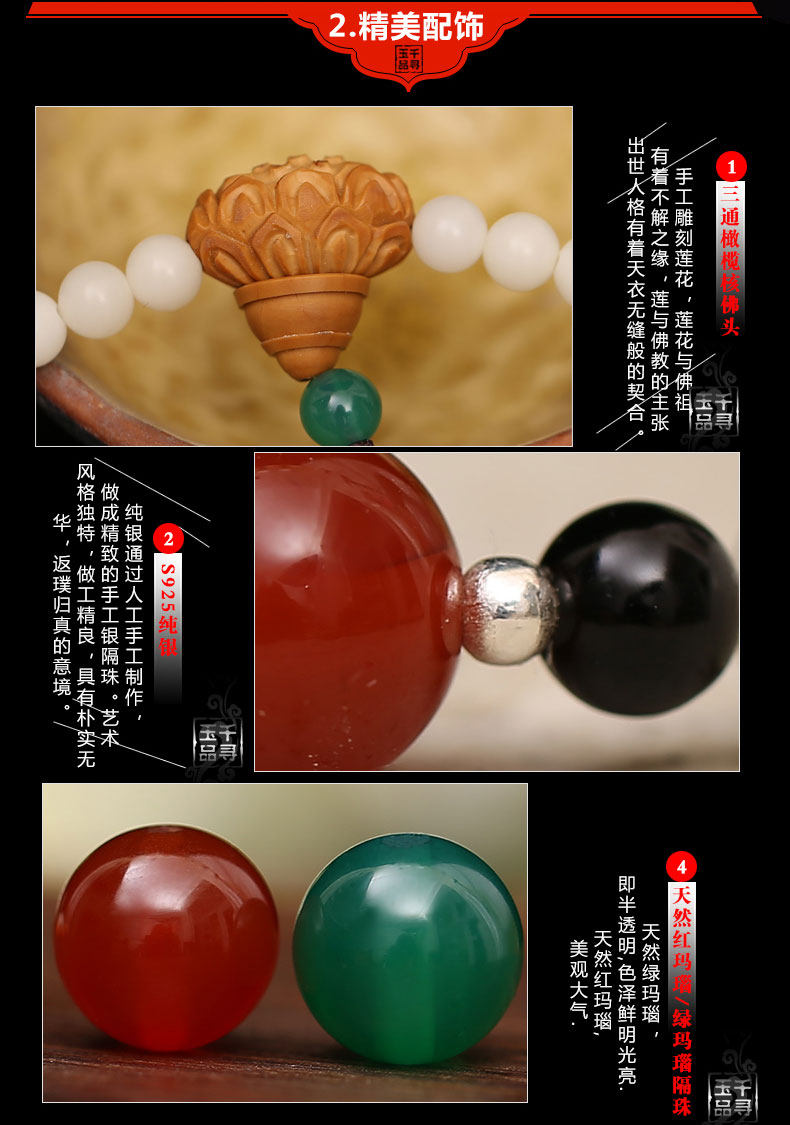 天然菩提根原创情侣款玛瑙珠银珠手工雕刻莲花