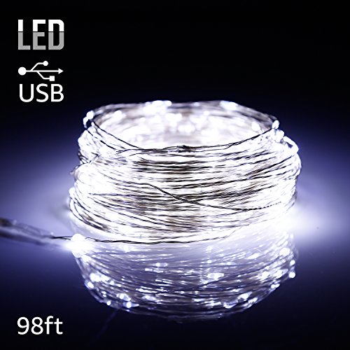 98ft 300LEDs Fairy String Lights Dimmable with Remote Control, Waterproof Copper Wire Firefly Lights for Christmas Bedroom Wedding Garden Patio Festival Party Decor, UL-listed USB Adapter, Daylight