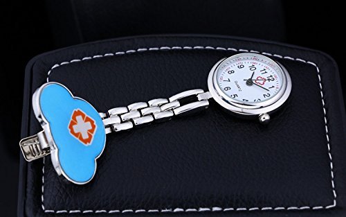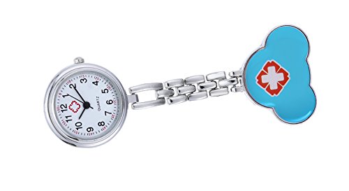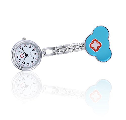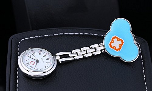 -. Title : Lovely Light Blue Bear Quartz Pocket Watch Lapel Nurse Watch Clip on