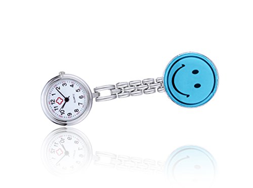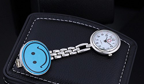 -. Title : Smile Face Lapel Pin Watch Nurse Fob Clip on Brooch Hanging Pocket Watch-Blue