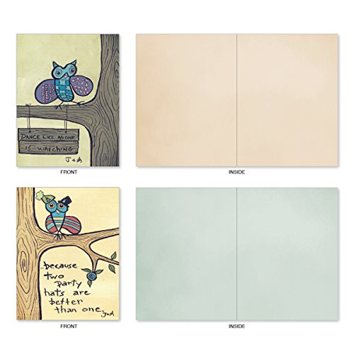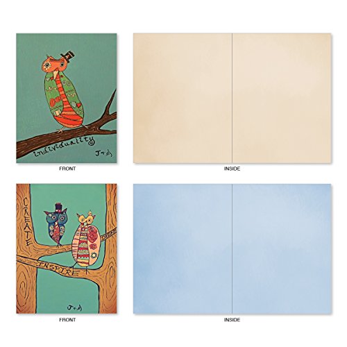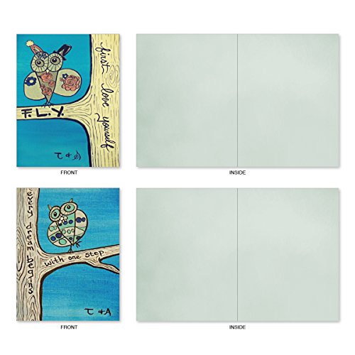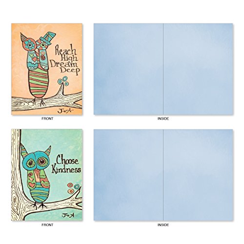 M6630OCB Life'S A Hoot: 10 Assorted Blank All-Occasion Note Cards Featuring Child Inspired Drawings of Owls Paired with Motivational Words, w/White Envelopes.