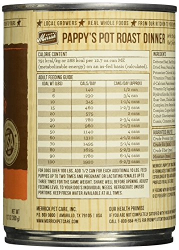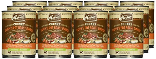 Grammy is no longer single. We've added pappy's pot roast to our cupboard to make the perfect couple of merrick recipes your dogs will devour. Made with big chunks of beef and hand-stuffed red jacket new potatoes and carrots in gravy, this new chunky flavor will make any mealtime special. Merrick chunky grain free pappy's pot roast dinner canned dog food contains no artificial colors, flavors or preservatives. Delicious, home style chunks that your dog will love.Feature