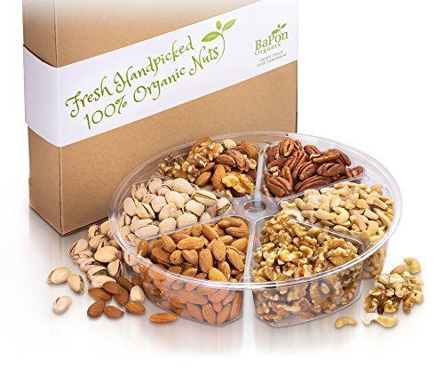 Organic Gourmet Nut Platter with Gift Box - 6 Flavor - Salted, Roasted, and Raw Nuts Variety Pack, Holiday Anniversary Birthday Present, by Bapon Organix
