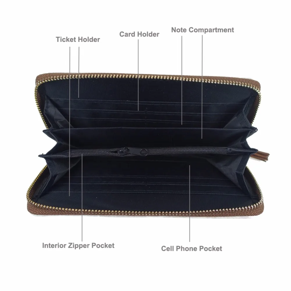 Interior:Interior Compartment,Cell Phone Pocket,Interior Zipper Pocket,Interior Slot Pocket,Coin Pocket,Note Compartment,Card Holder