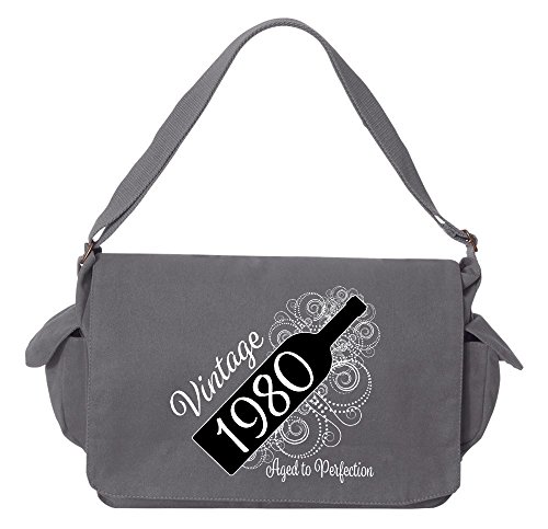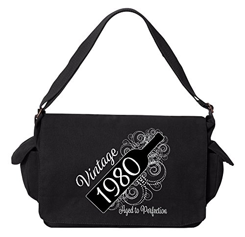 Studio : Tenacitee Publisher : Tenacitee Binding : Personal Computers Product Description Born in 1980 - Aged Like a Fine Wine Brushed Canvas Messenger Bag by Tenacitee. Express yourself! No boring bags here, this messenger bag is custom printed in our Oklahoma shop just for you. Made of 12oz 100% soft brushed cotton canvas this bag is perfect for telling the world what you think while you're out and about town. We use the latest Direct to Garment printing technology for a vibrant and soft print with less wasted ink. The bag is machine washable, has several inside zippered pockets, an interior key leash hook, and a 2" wide adjustable shoulder strap. The bag measures approximately 16"x11.5"x4.75". 0