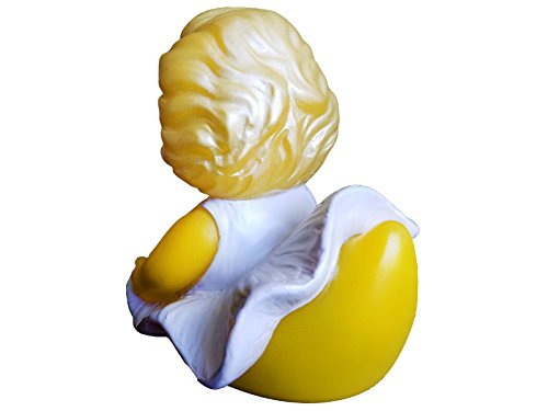 This Pond Bombshell CelebriDucky is dressed up in her signature white dress all ready to hit the pond! She's a collectible and limited edition piece of toy art. Our highly detailed and premium quality ducky is full 'rubber ducky' sized, 4.5 inches tall and 3.75 inches long. This unsinkable bath toy is completely sealed to stay clean and weighted to always float upright. CelebriDucks are made from safe phthalate-free and lead-free vinyl. Whether you're relaxing in a nice warm bath or chilling out by a cool pool, your CelebriDucks ducky will always bring a smile to your face.Feature