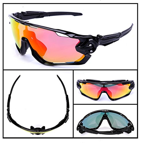 | Polarized Sports Sunglasses with 2 Interchangeable Lenses for Men Road Mountain Cycling Biking ... |