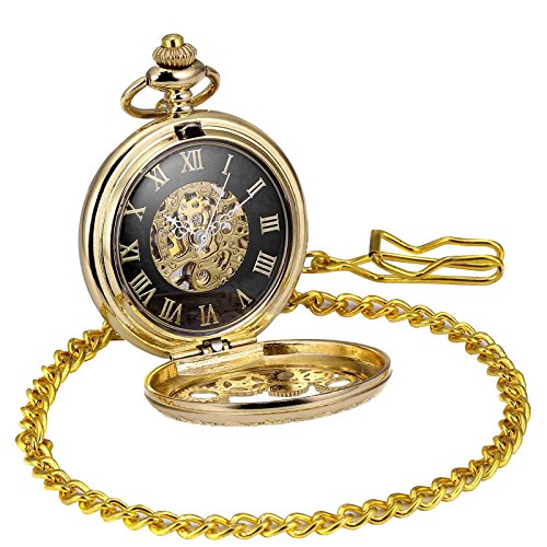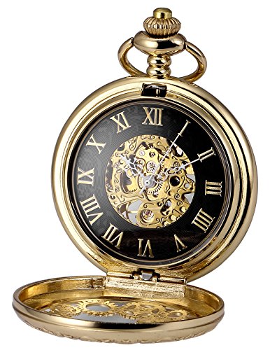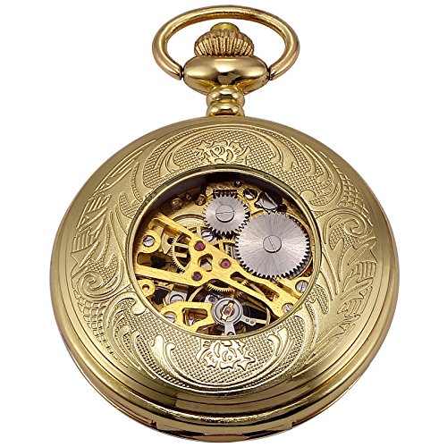 -. Title : AMPM24 Mechanical Pocket Watch Skeleton Golden Alloy Case WPK220