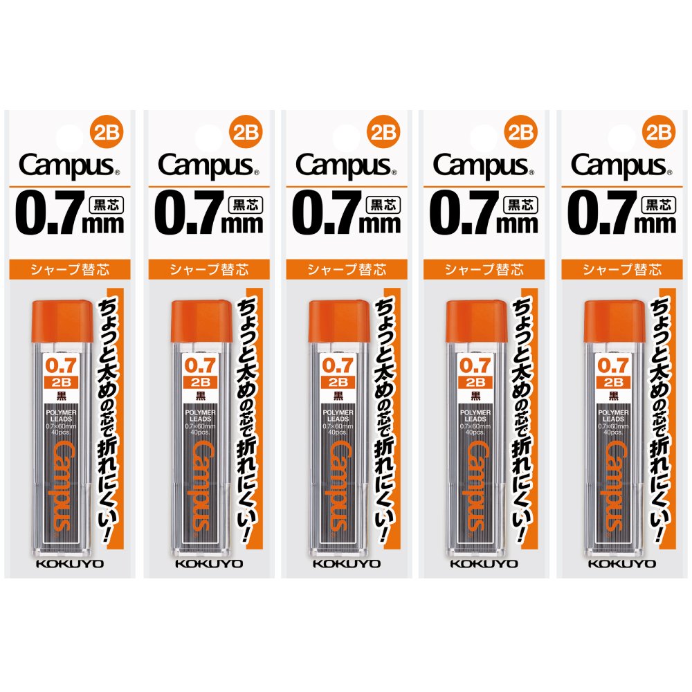 ポリマー芯を採用した書き心地の良いシャープ替え芯です。 【芯径】 0.7mm 【長さ】60mm 【芯濃度】 2B 【1個当たりの入り数】 40本 【パック数】 5個パック 【芯】ポリマー芯