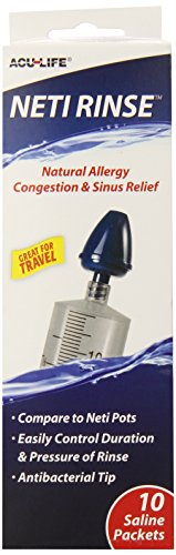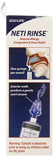 ReleaseDate : 2014-07-10 Studio : Health Enterprises Publisher : Health Enterprises Binding : Health and Beauty Product Description All natural sinus and nasal rinse kit including 10 rinse packets. Syringe delivery system provides maximum control over the pressure and duration of rinse and protects against back-flow if user slows down or stops during rinse. Antibacterial tip with fluted internal walls produce a gentle swirl for an effective large volume, low pressure nasal rinse. Acu-Life is a world leader for innovative self-care products. For over 35 years Acu-Life has designed and developed self-care products that positively impact the lives of people throughout the world. 0
