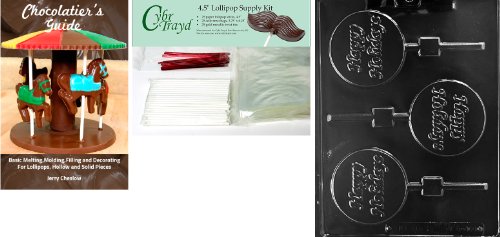 Cybrtrayd Happy Holidays Lolly Chocolate Mold with Chocolatier's Bundle of 25 Lollipop Sticks, 25 Cello Bags, 25 Red Twist Ties and Chocolatier's Guide