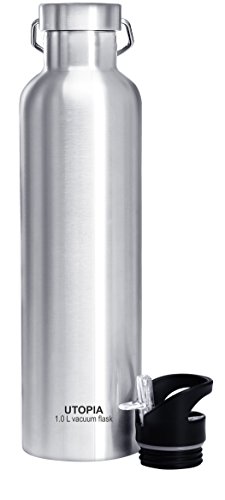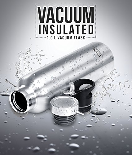 The multi capped bottle features “Flip and Sip” design cap and “Rotating Cap.” The rotating interlocking cap mechanism prevents the leakage of the liquid from the bottle. The “Flip and Sip” cap of the bottle allows for easy pouring and drinking from the stainless steel water bottle. The lightweight, compact design bottle is 33.5 cm tall with “Flip and Sip” cap while with the interlocking handle cap the bottle measures 31.7cm high. The stainless steel bottle is 8.5cm wide.