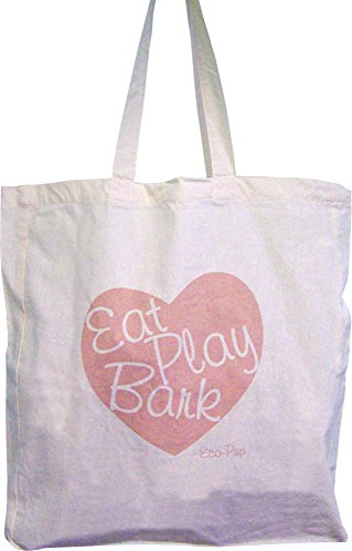 - Large 19" x 17" x 3" natural unbleached cotton tote bag with an eco-friendly 'Eat Play Bark' heart print