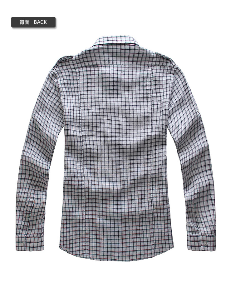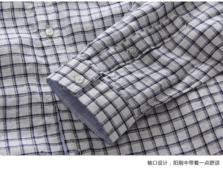 产品描述:丰富的撞色格纹,展现出青春的活力,帅气迷人,让严谨的衬衫多了份洒脱气质,有着经久不衰的时尚活力感;严谨车线做工简单大气,配合弧形的下摆版型和精致的门襟纽扣,细节处彰显品牌风尚;亚麻的面料质地穿着更加舒适,结合精致的板型分割,都展现出你的时尚高品位气质。