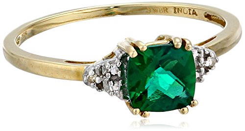 Timeless elegant design and vibrant color define the 10k Gold September Birthstone Created Ceylon Sapphire and Diamond Ring. A luminous cushion-shaped blue Ceylon sapphire with a distinctive checkerboard faceted cut is spotlighted on a lustrous 10k gold ring. This beaming gemstone is secured by polished rhodium beads and is glisteningly accented by two sparkling diamonds weighing .01 carats, giving this classically designed ring a dazzling, regal air. This exquisite ring is an ideal gift for someone born in the month of September.Feature