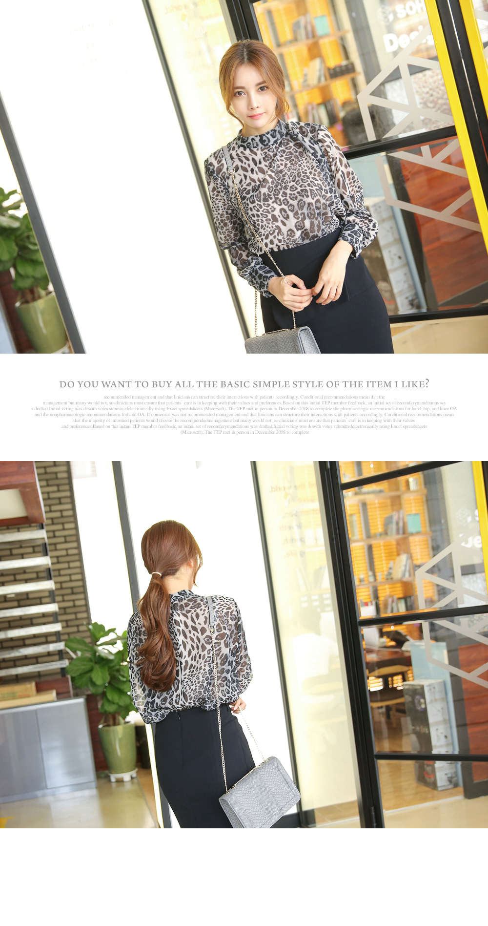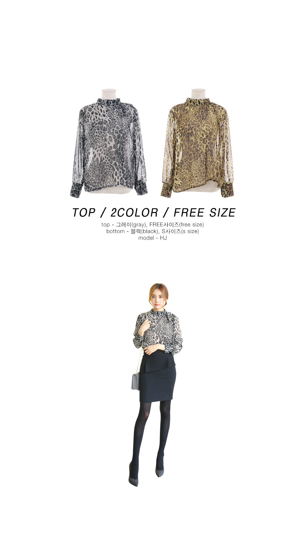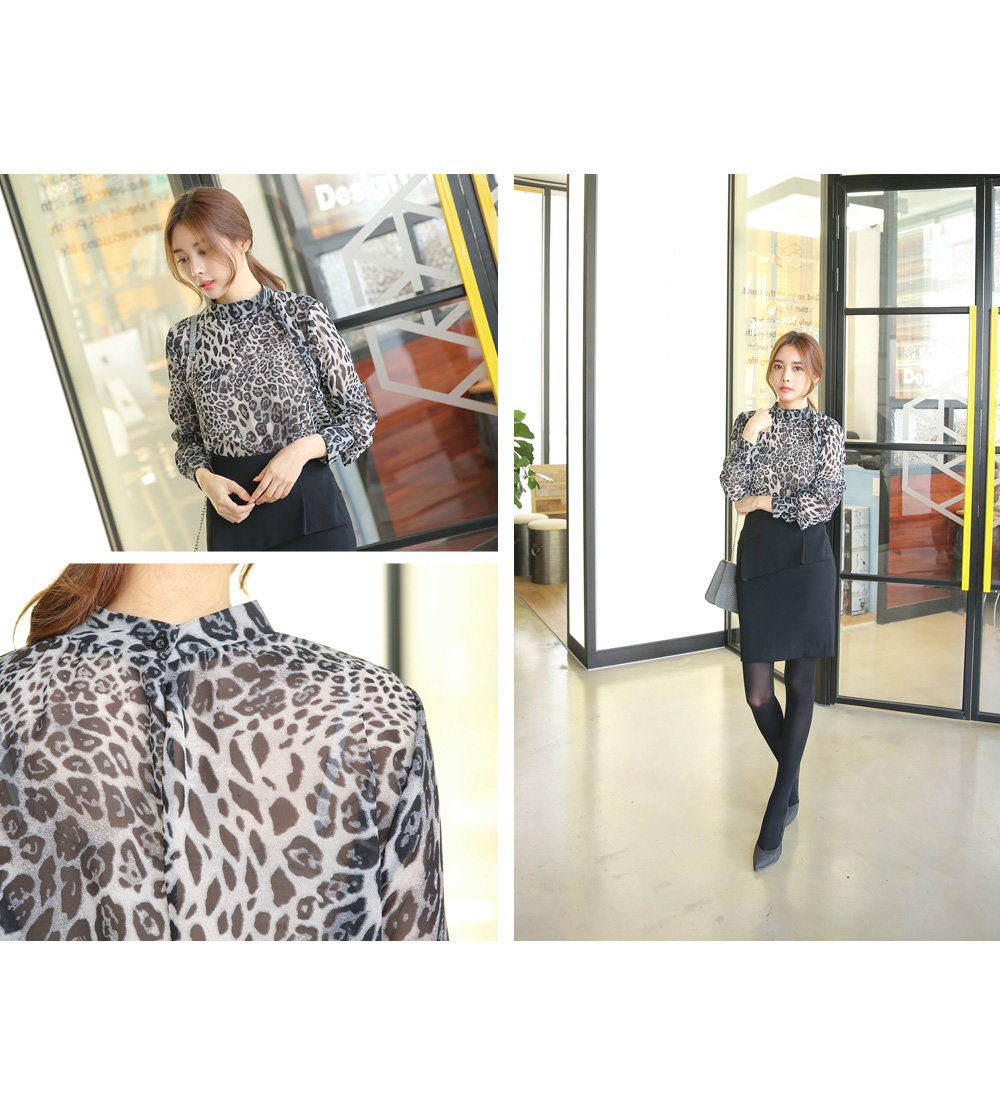 레오파드패턴의감각적인 이센트블라우스 소개해요하늘하늘한 쉬폰소재로 제작되어핏감이 내츄럴한 아이인데요전체적인 리얼 호피패턴으로 포인트가 되어주구요노출없이도 섹시함이 느껴지는 아이에요반 하이넥라인으로 더욱 고급스럽구요넉넉한 핏감으로 착용감은 편한 아이랍니다H라인스커트나 슬렉스, 스키니 등여러아이템과 잘 매치되는 아이~!특별한날, 포인트주기 좋아요~