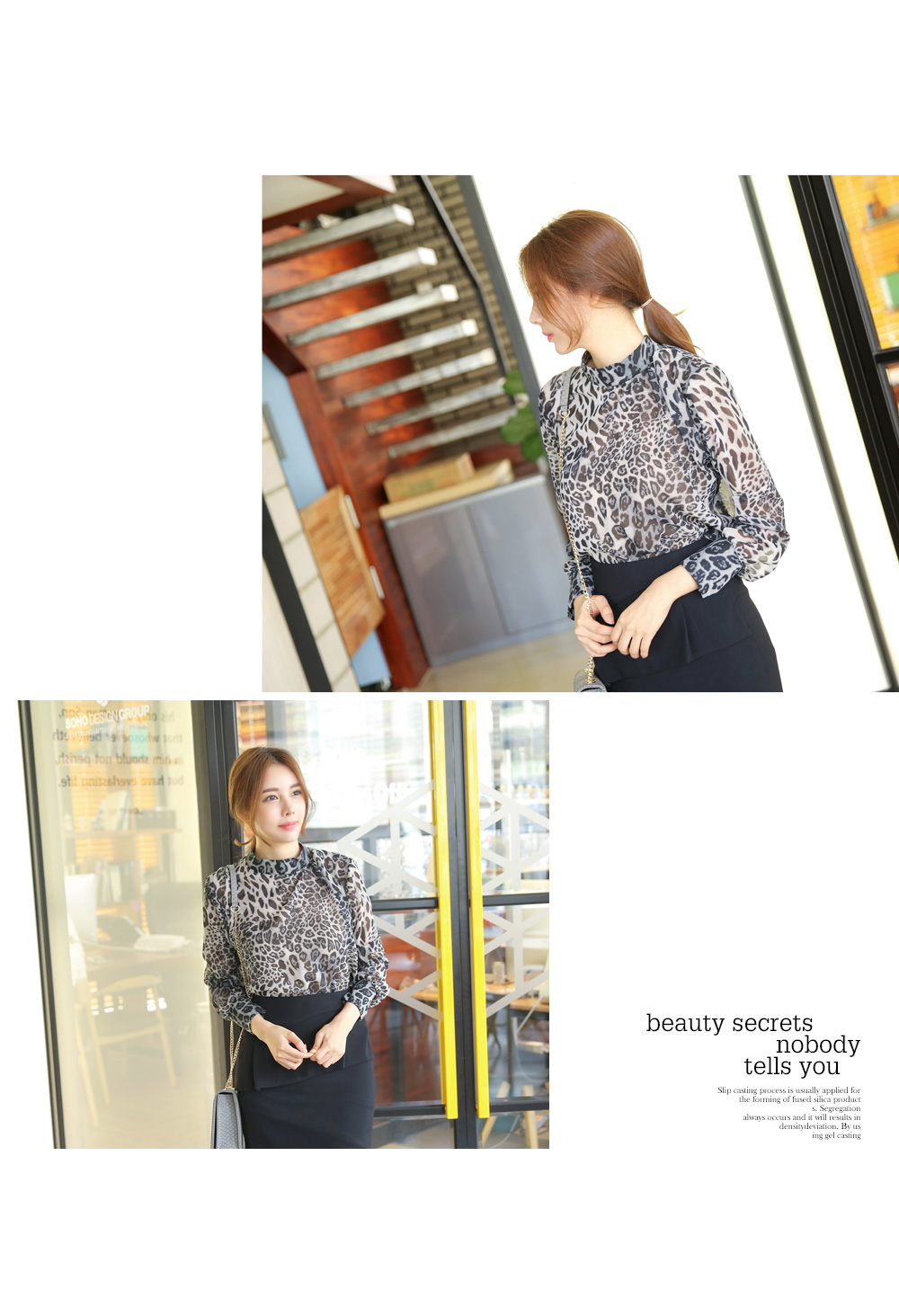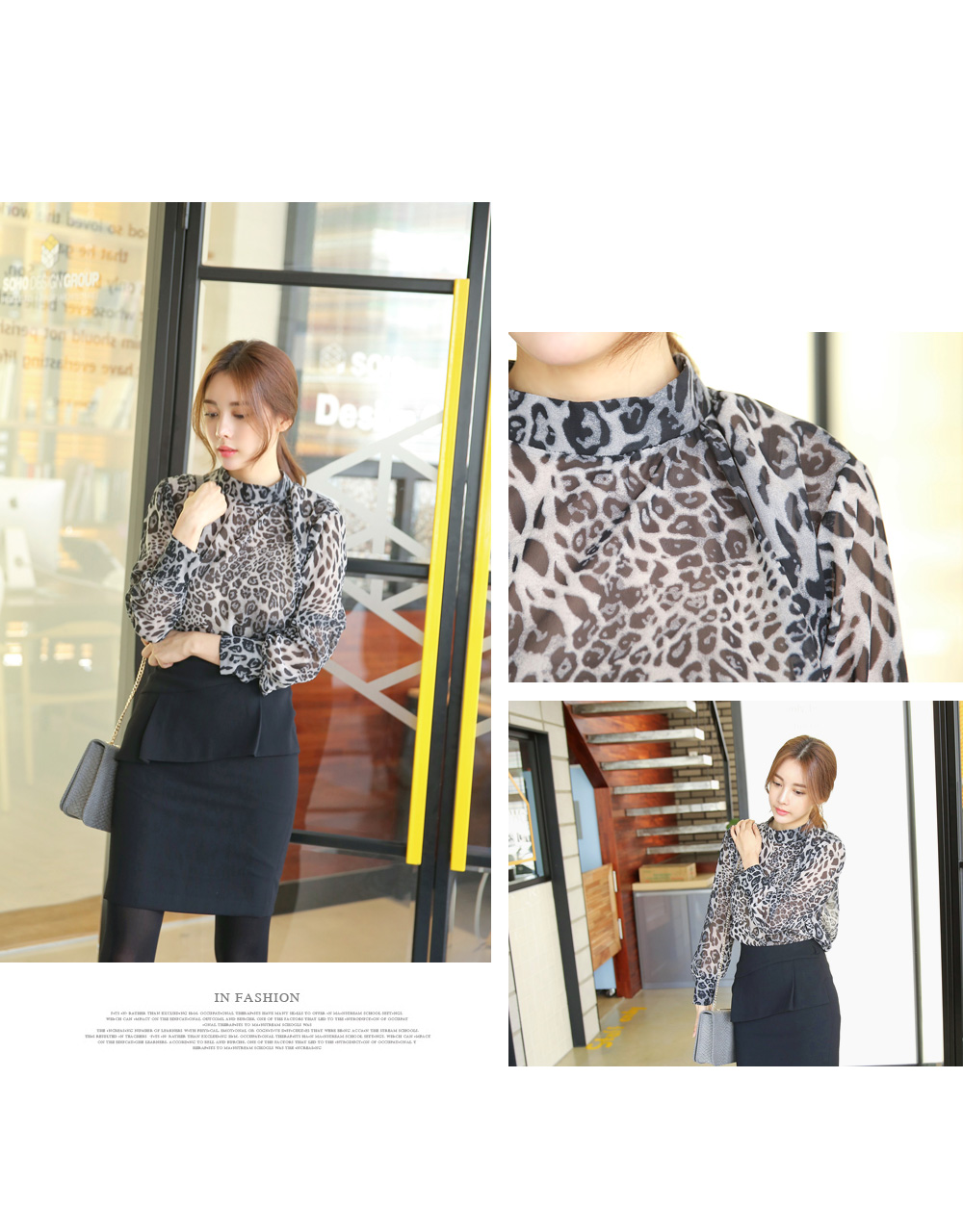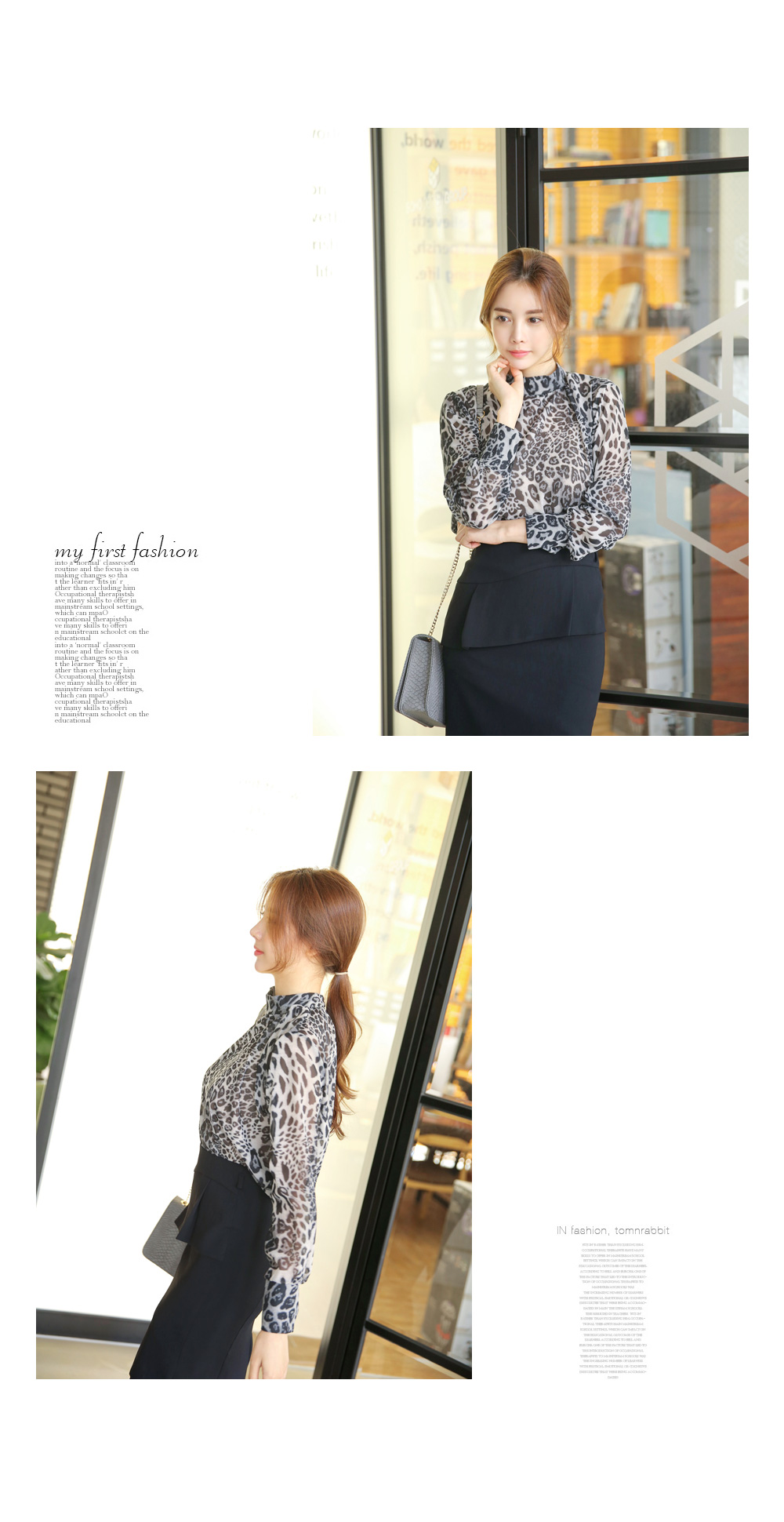 레오파드패턴의감각적인 이센트블라우스 소개해요하늘하늘한 쉬폰소재로 제작되어핏감이 내츄럴한 아이인데요전체적인 리얼 호피패턴으로 포인트가 되어주구요노출없이도 섹시함이 느껴지는 아이에요반 하이넥라인으로 더욱 고급스럽구요넉넉한 핏감으로 착용감은 편한 아이랍니다H라인스커트나 슬렉스, 스키니 등여러아이템과 잘 매치되는 아이~!특별한날, 포인트주기 좋아요~