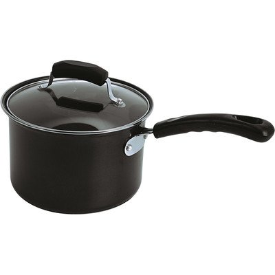 Carbon steel non-stick sauce pan 3 Quart. Fast and even heating. Releases food easily for fast clean up and delicious results. Non-stick interior. Comfortable silicone grip handles stay cool on the stovetop. Comes with a glass lid. Easy to clean. Hand wash recommended.Feature