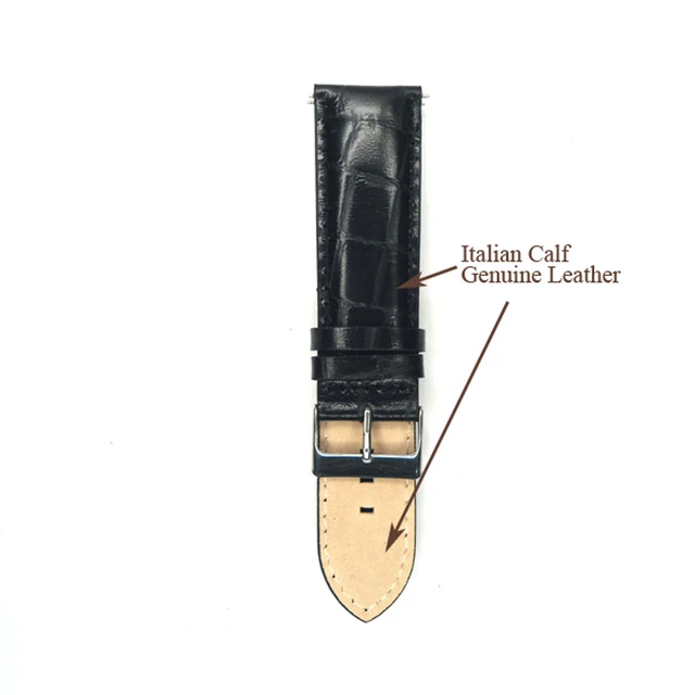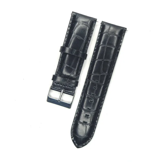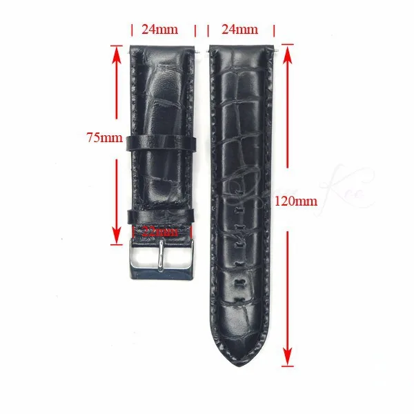 24mm 시계 끈 악어 사각형 송아지 진짜 가죽 시계 밴드 손목 시계 검은 색 악어 버클 벨트 시간